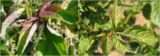 Растения отстают в росте. У верхушечных листьев розовеют основные доли. Листья мельчают, свёртываются воронкой, утончаются, края их становятся слегка волнистыми. Нарушается нормальная работа корневой системы. Образующиеся клубни твёрдые, при посадке часто не прорастают.