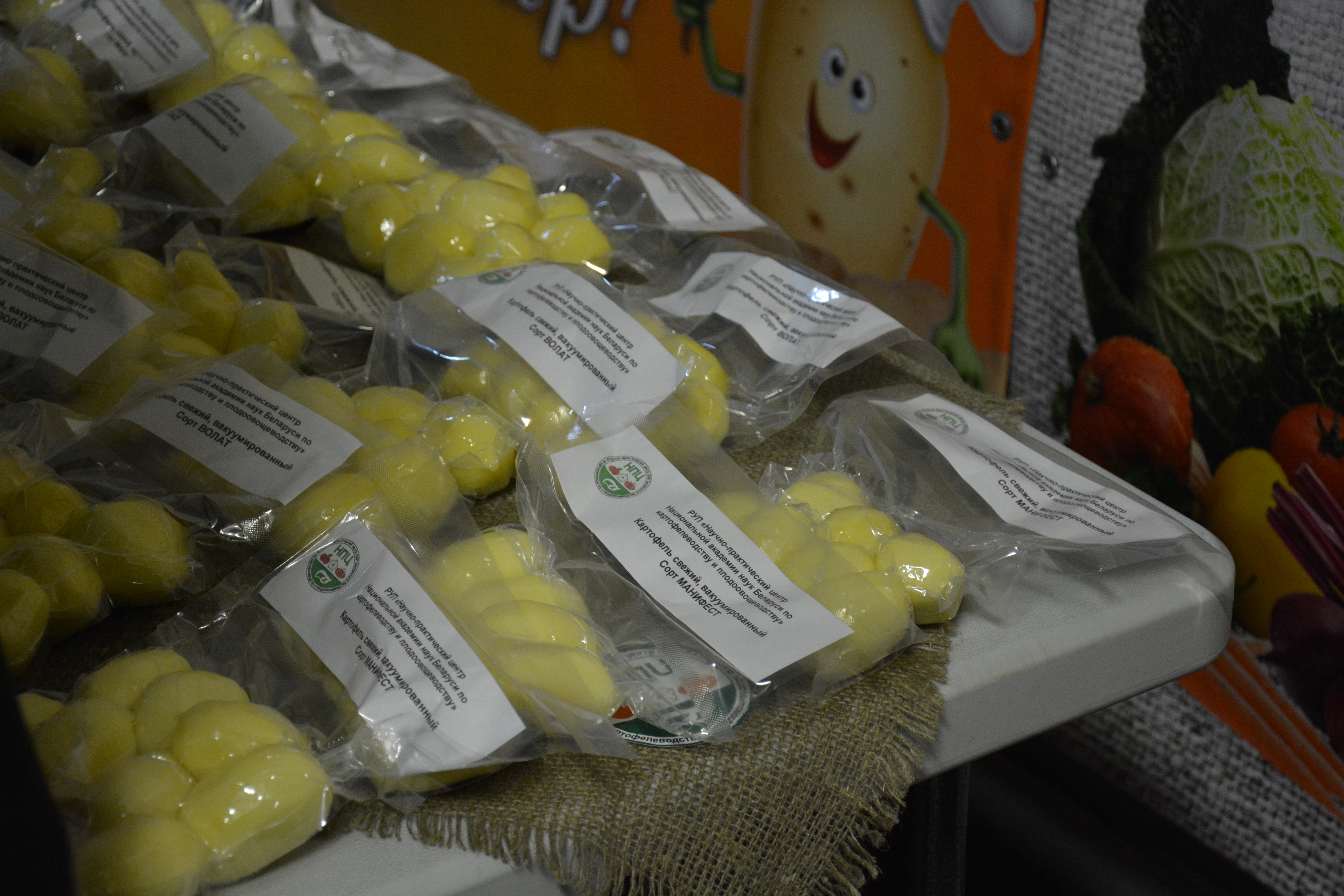 Центром были представлены натуральные образцы картофеля сортов белорусской селекции: ранние –Талачынски,, Палац; Уладар; среднеранние – Манифест, Бриз; среднеспелые – Скарб, Волат, Лель; среднепоздние – Вектар, Нара, DSC_2740а также вакуумированный картофель (сорт Манифест и Волат).DSC_2773 Перспективные образцы картофеля с пигментированной мякотью.DSC_2771