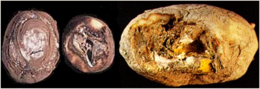Мумификация – такой тип заболевания, когда пораженный клубень картофеля густо пронизывается грибницей, затем полностью высыхает. Эта форма болезни наблюдается при поражении клубней возбудителями сухой фузариозной гнили в условиях пониженной влажности во время хранения картофеля.