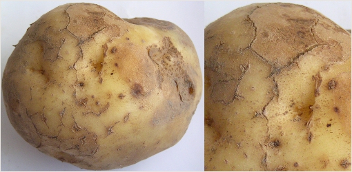 Возникает на клубнях некоторых сортов картофеля в результате мощного развития кожуры (под влиянием высокого плодородия почвы, большого количества влаги после длительной засухи) и одновременного её растрескивания.