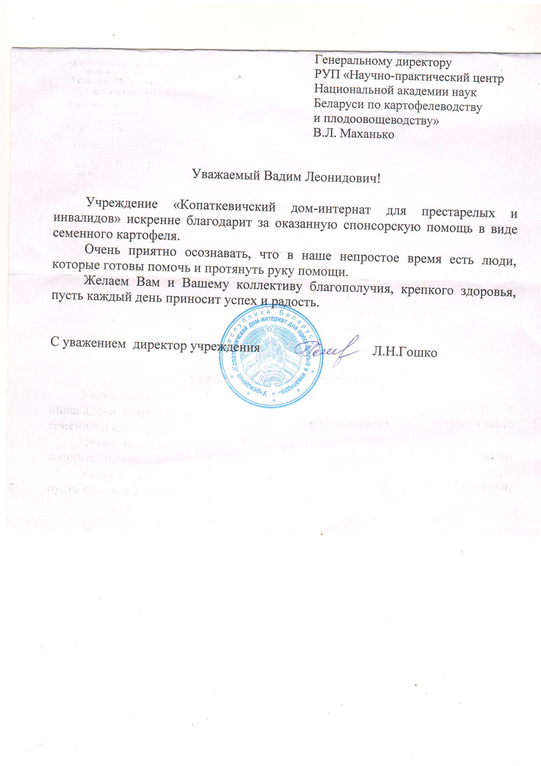 РЕСПУБЛИКАНСКОЕ УНИТАРНОЕ ПРЕДПРИЯТИЕ «НАУЧНО-ПРАКТИЧЕСКИЙ ЦЕНТР НАЦИОНАЛЬНОЙ АКАДЕМИИ НАУК БЕЛАРУСИ ПО КАРТОФЕЛЕВОДСТВУ И ПЛОДООВОЩЕВОДСТВУ»