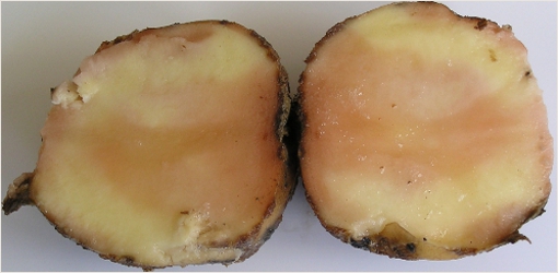 При удушении часть поверхности клубня размягчается, однако пятна отсутствуют. Кожура легко снимается. На разрезе видна гнилая ткань в виде белой или розоватой рыхлой кашеобразной массы со спиртовым запахом. Часто пораженная ткань отделена от здоровой темной каймой.
